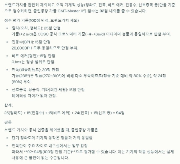 장착된 모델은 롤렉스 정품매장이나 롤렉스 전문수리점에서도 정품과 헷갈려 할 정도의 퀄리티를 갖고 있는 것으로 평가되는 제품이라는 답변을 받고 구매를