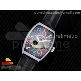 OX공장 프랭크뮬러 크레이지아워 점핑아워무브먼트 스틸 블랙다이얼 컬러풀마커 가죽스트랩 Crazy Hours Real Jumping Hour SS Black Dial Colorful Markers on Black Leather Strap A23J